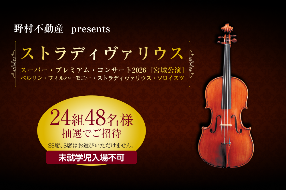 野村不動産グループカスタマークラブ会員様限定 2026年6月5日(金)開催の『ストラディヴァリウス スーパー・プレミアム・コンサート2026宮城公演』に抽選でご招待!