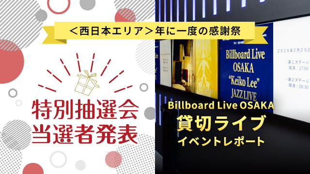 【西日本エリア会員様限定】 年に⼀度の感謝祭 Billboard Live OSAKA 貸切ライブ&特別抽選会当選者発表
