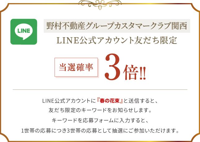 LINE友だちは当選確率3倍!公式LINEからキーワードをGETしよう!