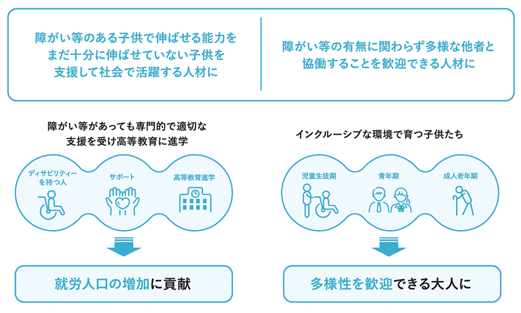 「D&I教育研究実践センターは設立以来、2つのビジョンを掲げて活動してきました。1つ目は障がいや病気の影響で本来持っている力を発揮できない子どもたちに適切な支援を実施し、社会で活躍できるようにすること。2つ目は障がいの有無に関わらず、多様な他者と協働することを歓迎できる人材を育てることです。そのために安全・安心で質の高いインクルーシブな教育環境づくりを目指しています」