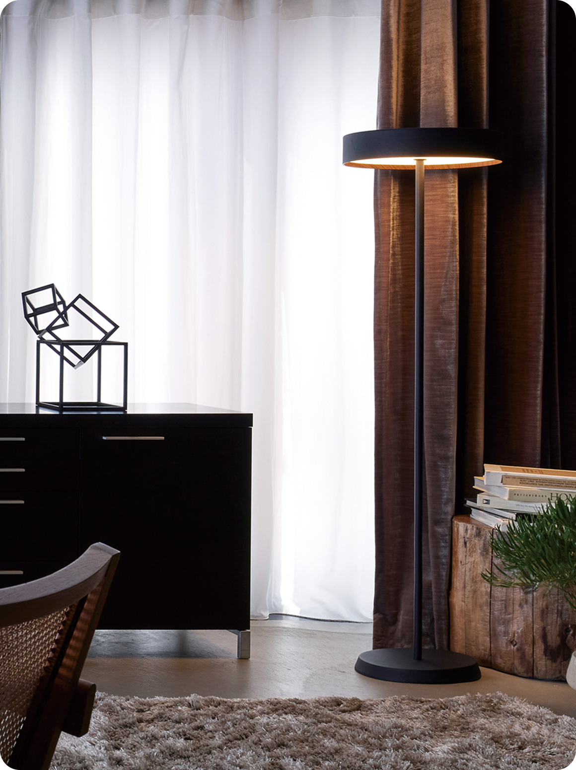 夕食後のひととき、リビングの照明を少し落とし、フロアランプで足元をほんのり照らせば、大人のためのリラックス空間へと変わります。