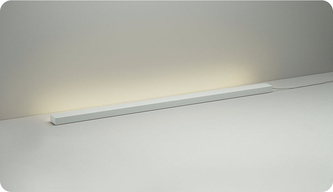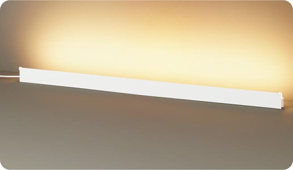 壁面を明るくしたり、床面を明るくしたり。ソファの下などに設置すると手軽に間接照明が楽しめます。上:照射イメージ、下:照明器具拡大HomeArchi ホリゾンタルライト スタンドタイプ(SF062WK/パナソニック)
