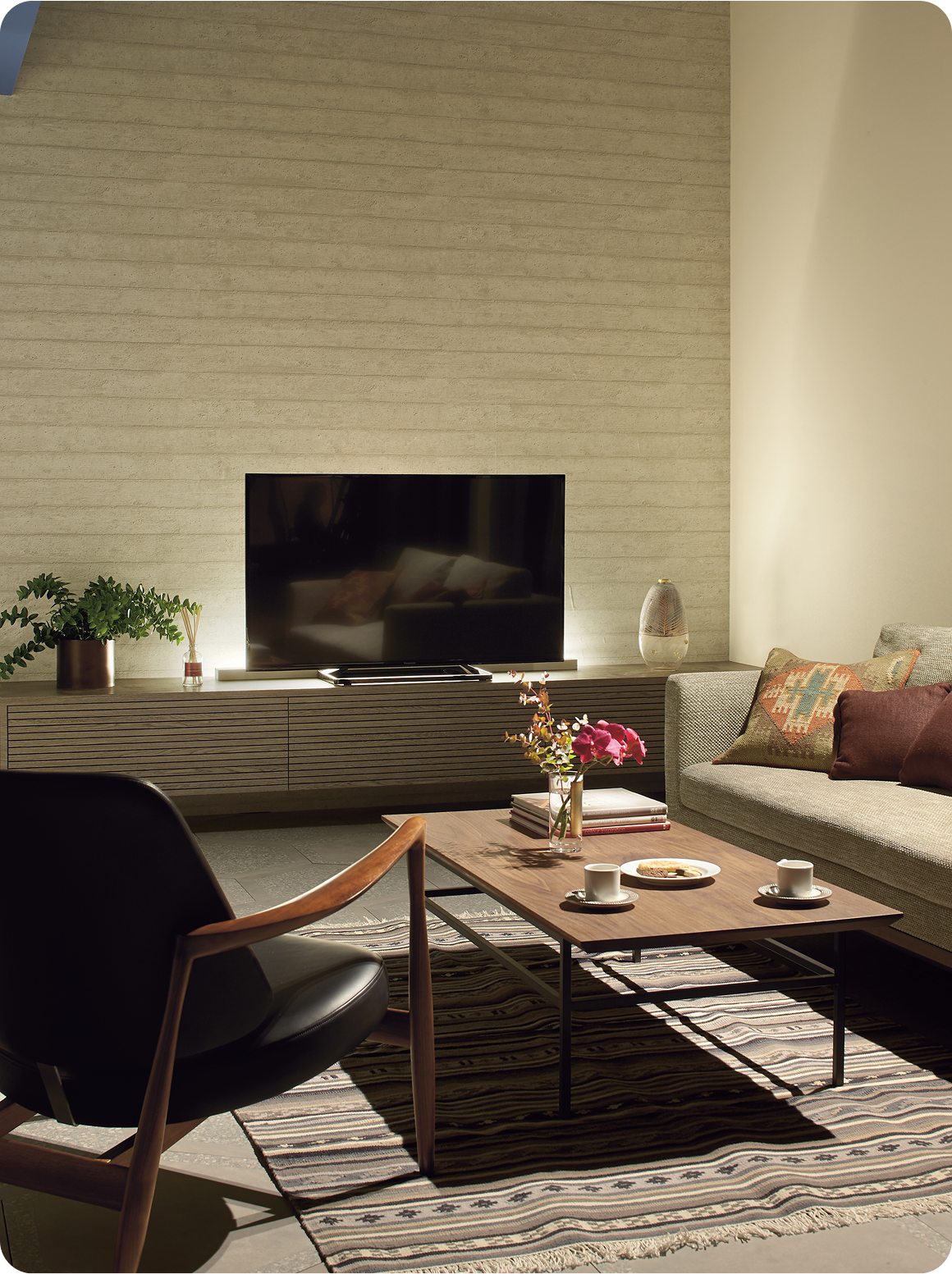 ソファやテレビ、ベッドまわりに「間接照明」を加えれば、高級リゾートのような非日常感を手軽に演出できます。