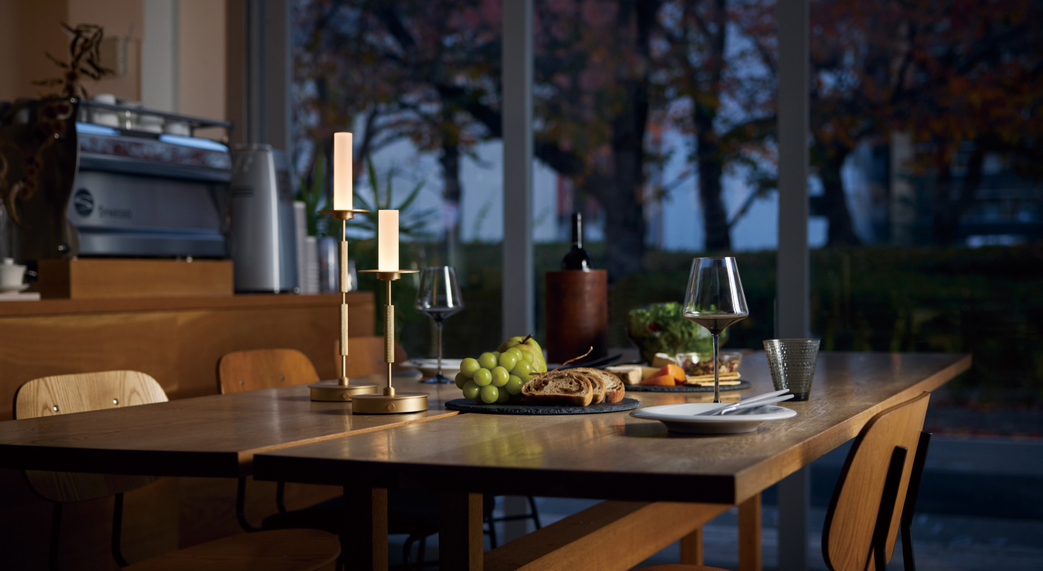 全体を明るく照らす光から、低い位置の光に切り替えることで、自然と目線が下がり、ゆったりとした気持ちに。顔を直接照らさないので緊張が和らぎ、リラックスして会話を楽しめるようになります。