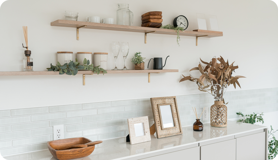 棚はぎっしり詰め込まず、余白をつくることがゆとりを感じさせるコツです。ぎっしり詰まった収納は、空間に緊張感を生み出します。今年の大掃除では、思い切ってモノを整理して余白を作ってみましょう。余白は空間に静けさやゆとりを生みだし、心をほっとさせてくれます。