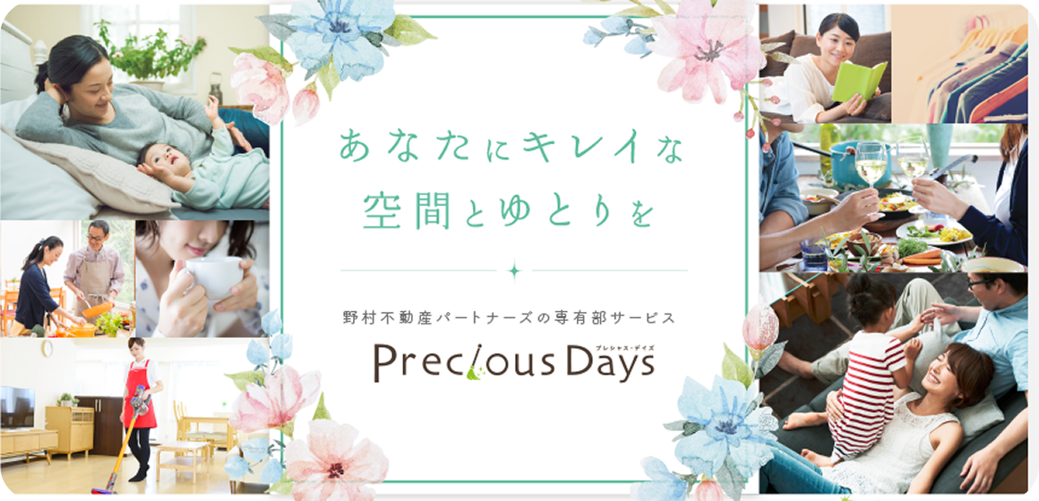 プレシャス・デイズは野村不動産グループ会員向けの家事サービスとハウスクリーニングのサービスです。大掃除の依頼だけでなく、日常的なお掃除やお片付けなど、必要に応じて依頼ができます。