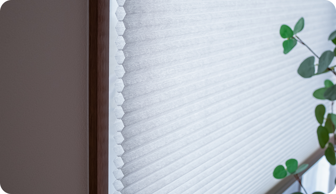 窓の断熱性能を高め寒さを防ぐハニカムスクリーン。生地断面が蜂の巣(ハニカム)構造になっていて、この空気の層が高い断熱効果を発揮します。