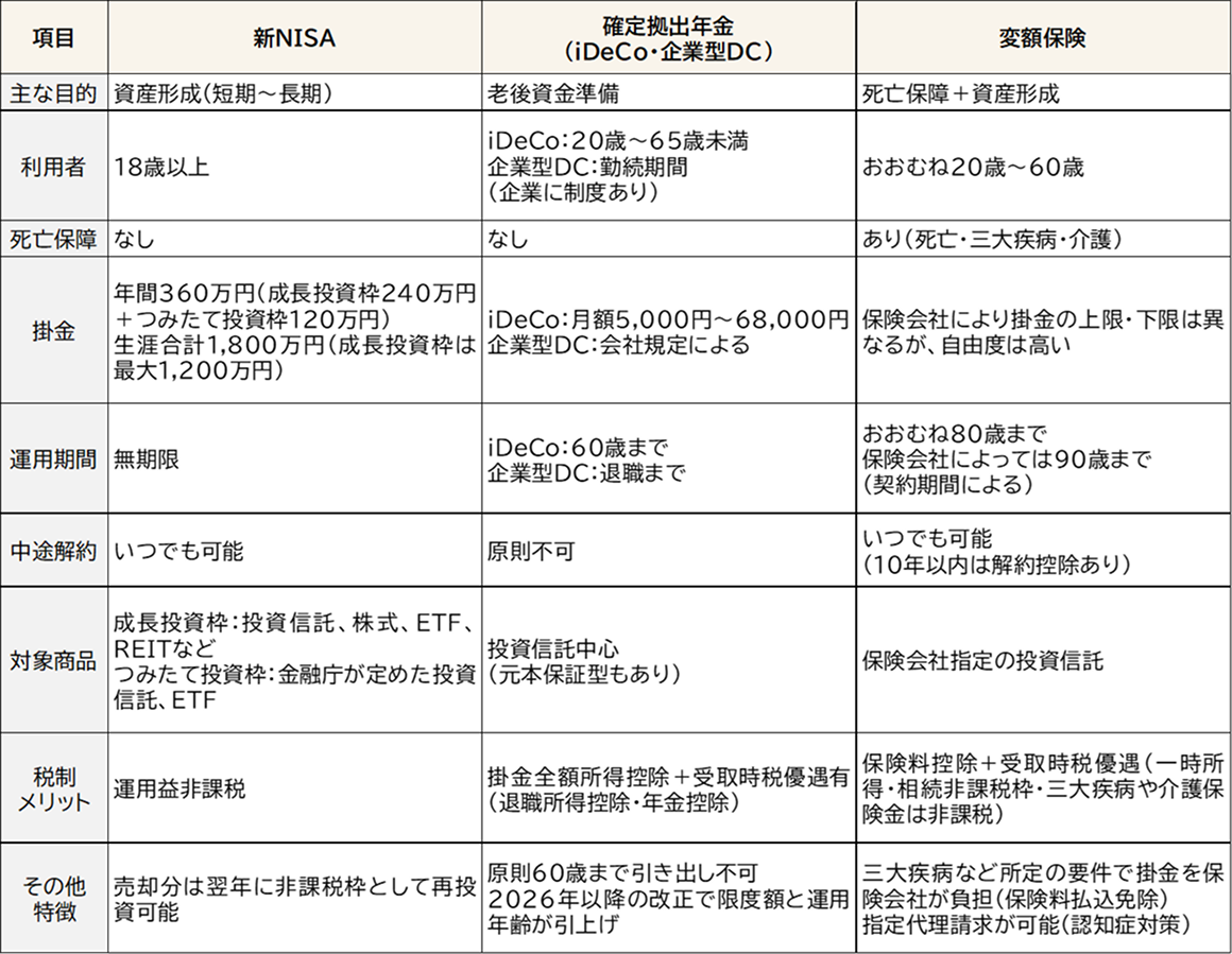 2. 新NISA・iDeCo・変額保険の特徴を理解する