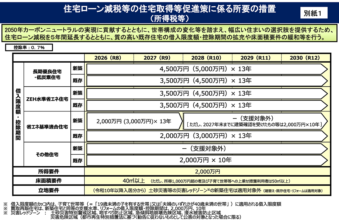 1.住宅ローン控除 5年延長、中古重視・災害リスク配慮へ