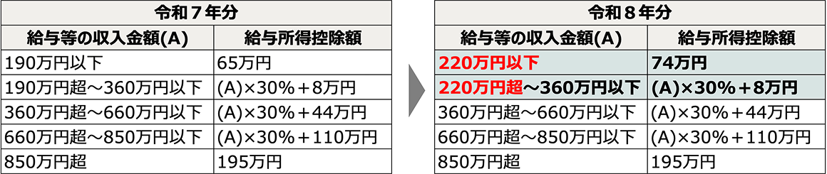 令和7年と令和8年の給与所得控除