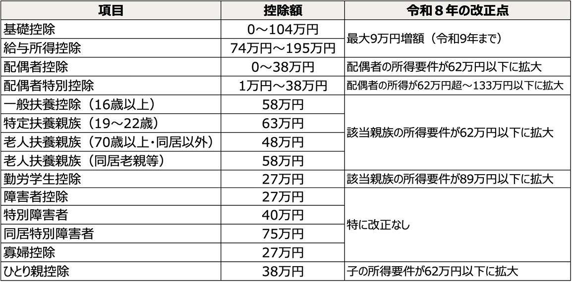 令和8年 所得控除一覧(本人・家族)