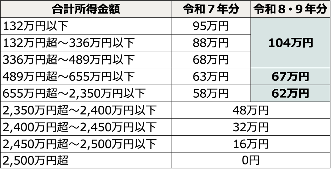令和7年と令和8年の基礎控除(特例含む)