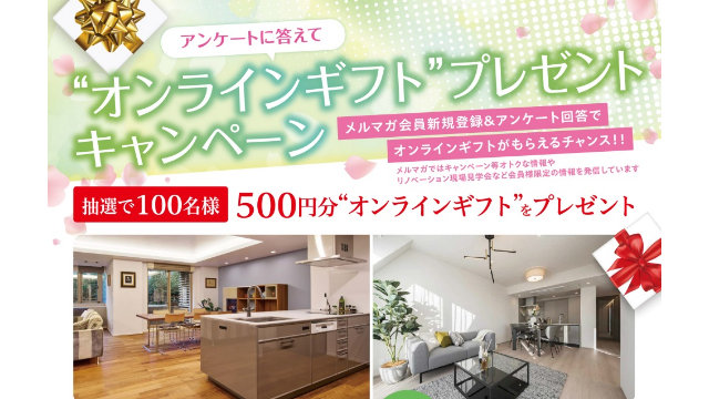 メルマガ会員登録&簡単なアンケート回答で抽選で100名様にオンラインギフトをプレゼント。